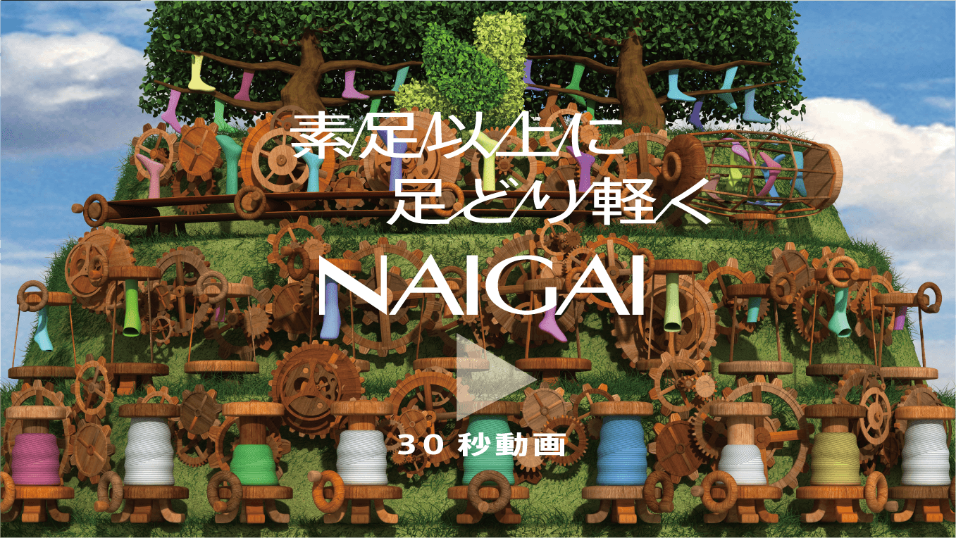 くつしたは素足の心地よさを超えることができるのか? NAIGAIはその答えを求めて未来へと突き進みます。 100年こだわり続けて創り上げたくつしたを、 次の100年も、「素足以上に足どり軽く」履き続けて欲しい。 くつしたから毎日が変わりますように。