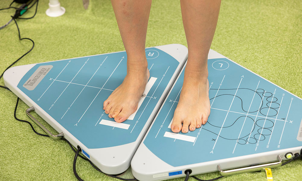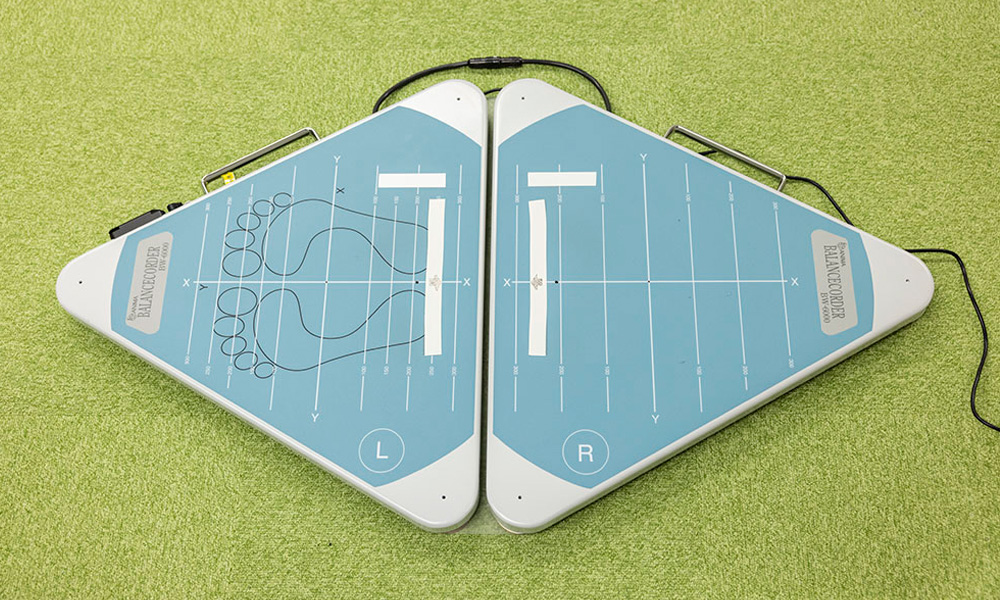 こちらの機械では立位姿勢での重心動揺や、下肢の荷重、重心可動域等をもとに、足腰の総合的なバランス感覚を測定することができます。