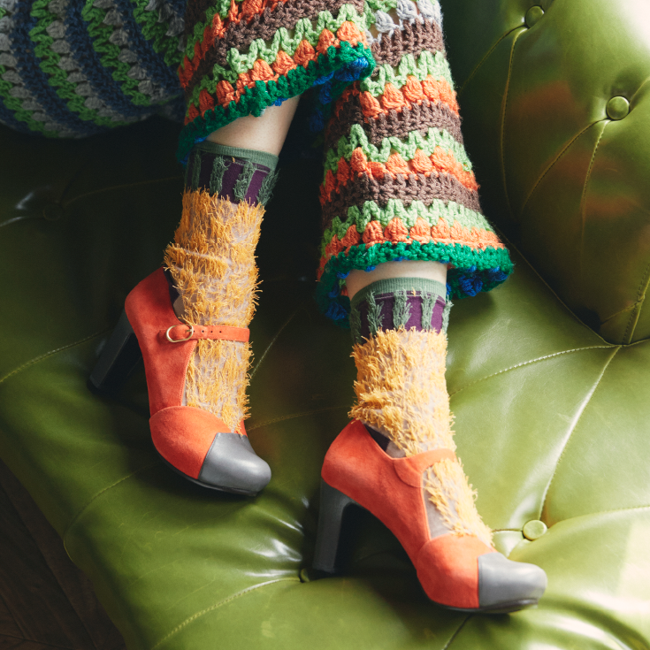 柄糸の端末をフリンジの様に見せたクルーソックス