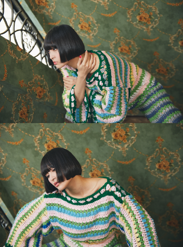 裏返して幾何学柄としても着用可能なリバーシブル
